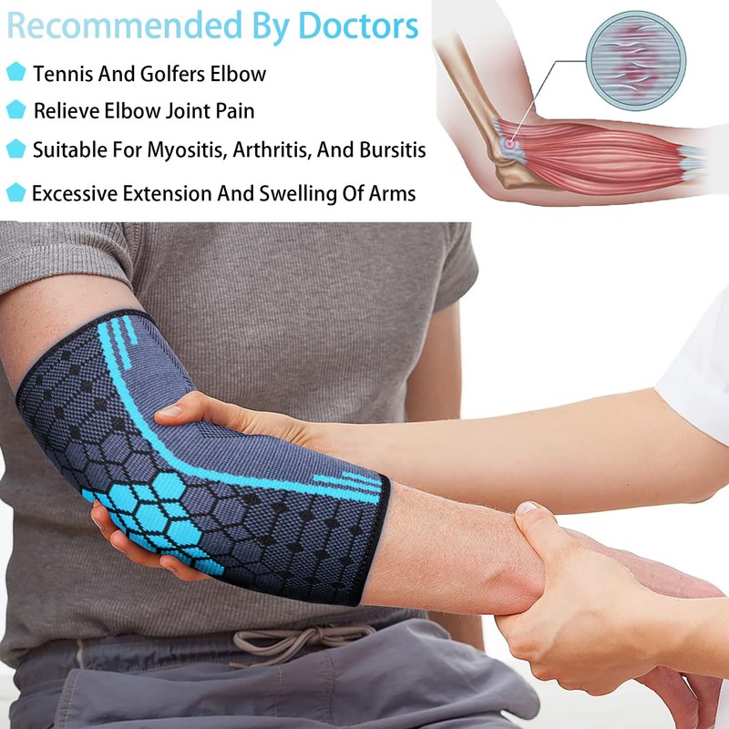 - VERSATILE Our compression elbow braces can be used anytime, anywhere, and with a variety of uses, making them ideal for strenuous activities and sports such as weightlifting, basketball, tennis, volleyball, golf, volleyball, fishing, carpentry, house cleaning, shoveling, driving, gardening and all outdoor and indoor sports work. It is also suitable for people who suffer from myositis and arthritis, and relieves arm pain.