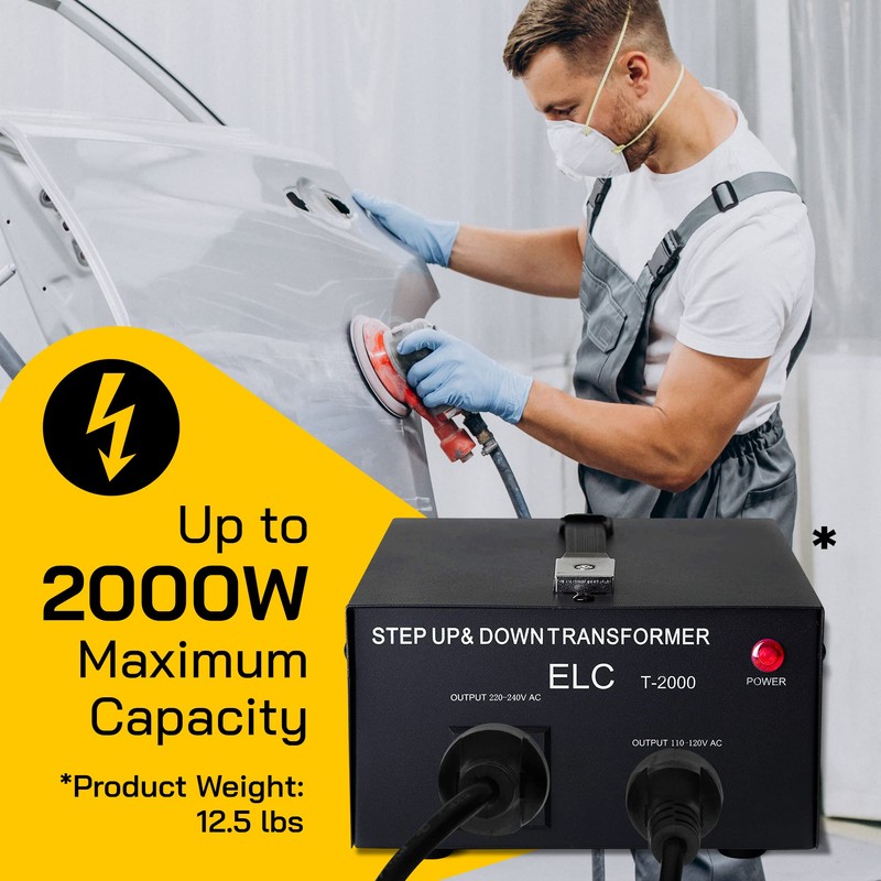 ELC T Series 2000 Watt Voltage Converter Transformer - Step Up/Down - 110v to 220v / 220v to 110v Power Converter - Circuit Breaker Protection, CE Certified [3-Years Warranty]