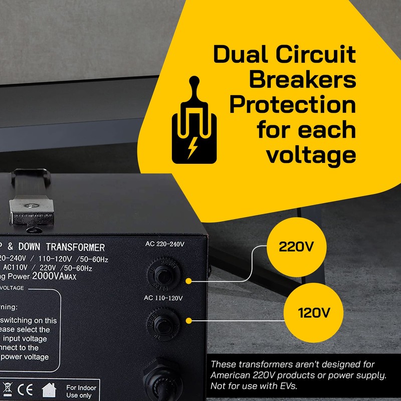 - This voltage converter transformer has dual circuit breakers protection for each Voltage (120V & 220V). Our Units are CE Certified