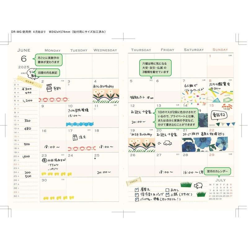 Elcomune Matka DR-MG-515 Notebook, Begins April 2025, B6, Monthly Pieni, Dinosaur