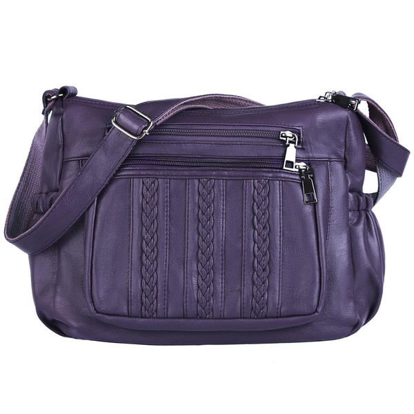 ELDA Purses for Women Pocketbooks Soft PU Leather Ladies Crossbody Purse Multi Pocket Shoulder Bag (Dark Purple)