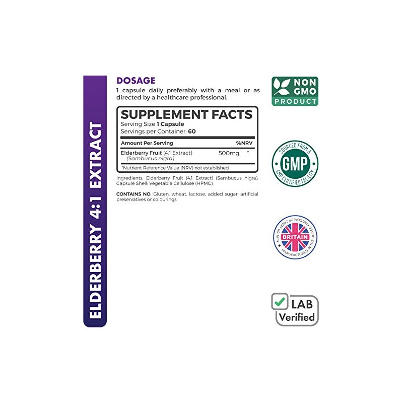 - Pure and potent: With the equivalent of 2,000mg of fresh black elderberries in each capsule, and no additives, our 4:1 elderberry extract is a potent elderberry extract of unrivalled purity. Now you can experience all the daily benefits sambucus elderberry can provide with just one convenient, easy-to-swallow capsule.