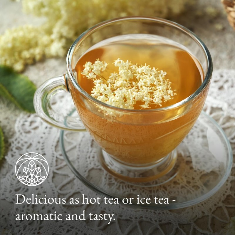 - Exceptionally pure, 100% natural elderflower tea for the most delicious cup of tea. We are committed to the sourcing of herbs of great quality, aroma and flavour.