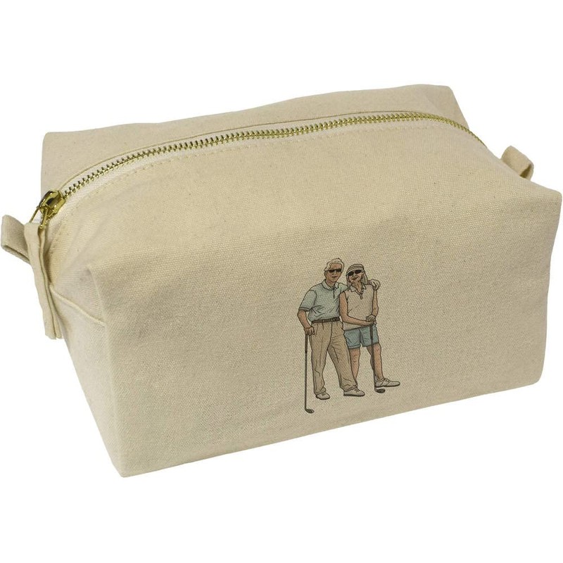 'Elderly Golf Couple' Canvas Wash Bag/Makeup Case (CS00026614)