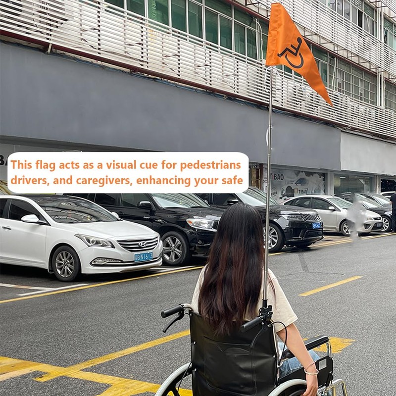 - Orange bright and attention-grabbing color that significantly increases your visibility to others, especially in crowded or busy areas. This flag acts as a visual cue for pedestrians, drivers, and caregivers, enhancing your safe.