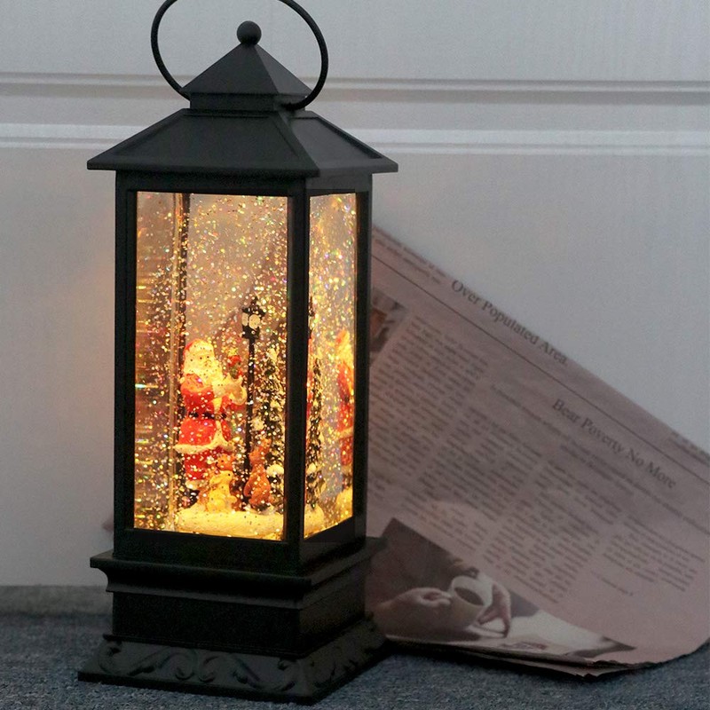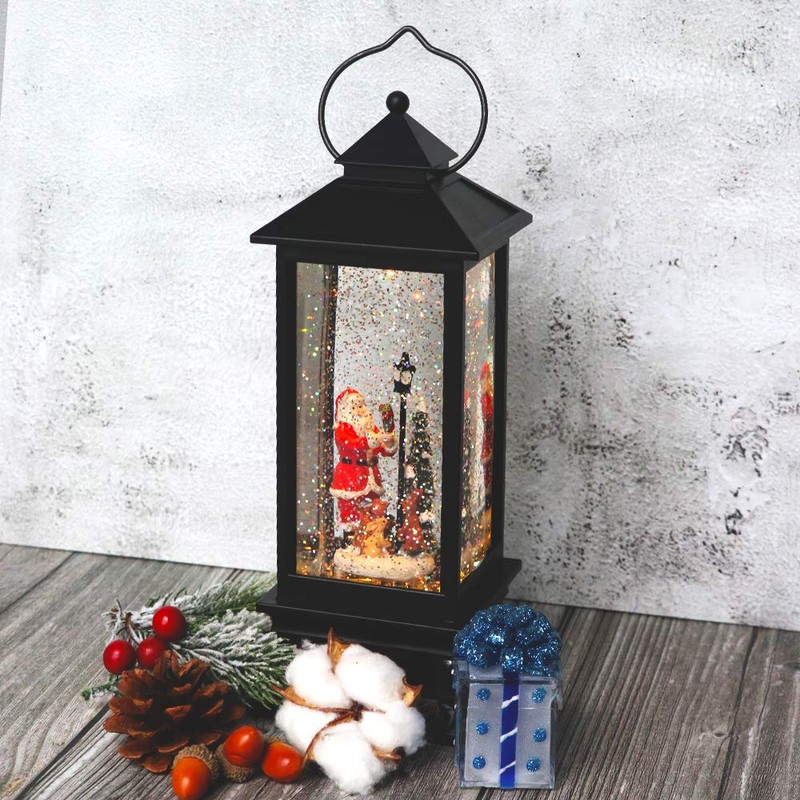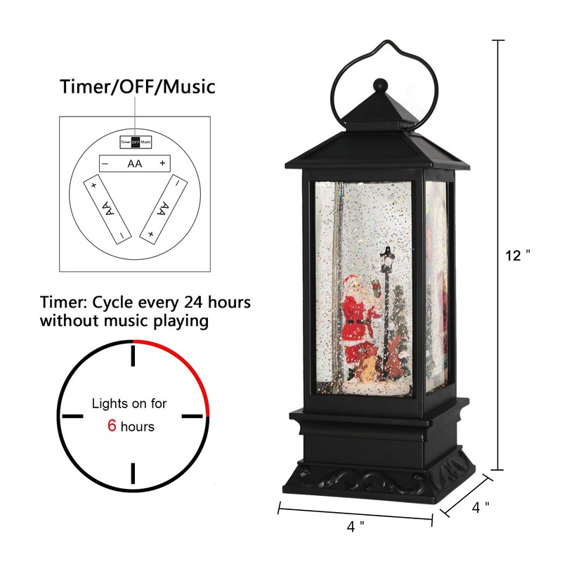 - ★WHAT YOU WILL GET: You will get 1 pcs Water Snow Globe Lantern with Santa Claus figurine in black color finish, which can be operated by USB cord (included) or 3 AA batteries( not included). Product dimension is 4" x 4" x 12"