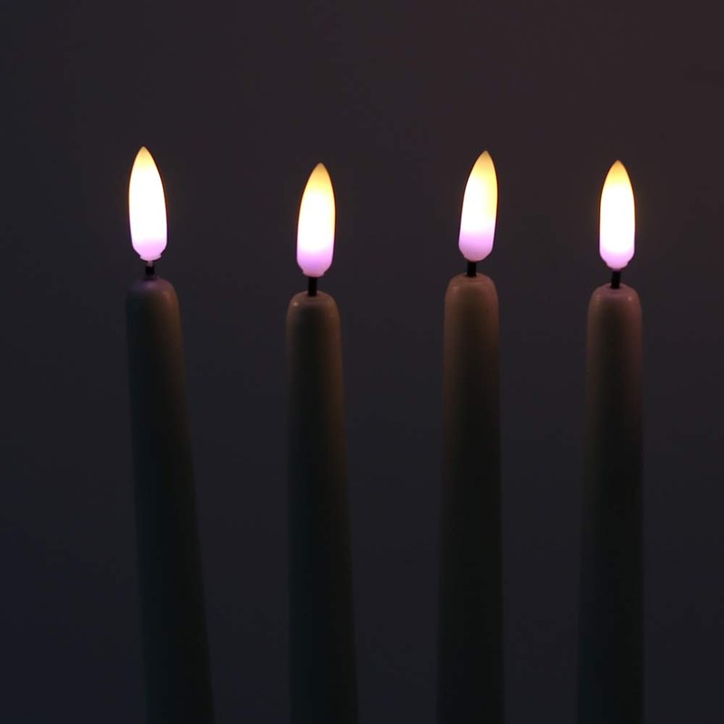 - Realistic Flame Appearance Our flameless taper candles use the latest flame simulation technology. When you turn on the LED candles, the real-looking purple-yellow colours of a flame flicker and sway like dancing with the wind. You and your guests will definitely be impressed.