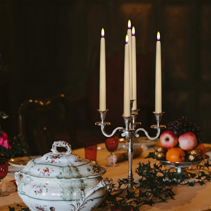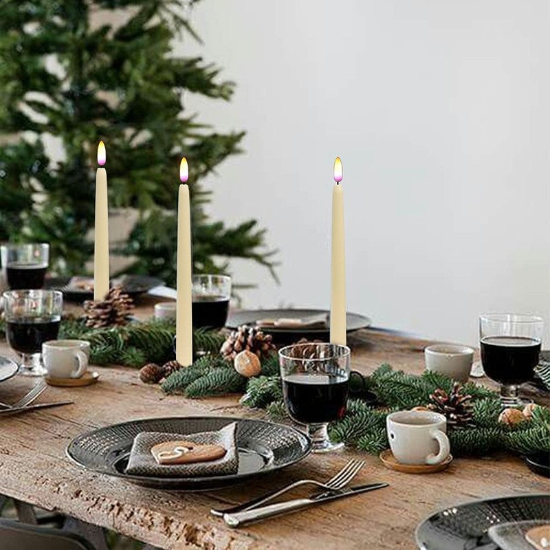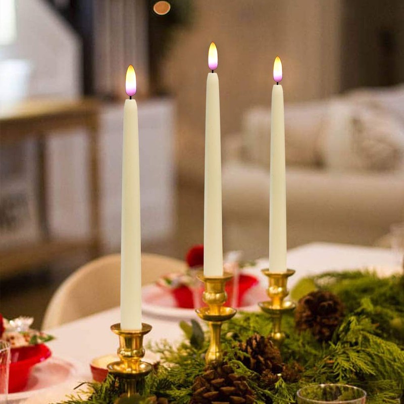 - Realistic Flame Appearance Our flameless taper candles use the latest flame simulation technology. When you turn on the LED candles, the real-looking purple-yellow colours of a flame flicker and sway like dancing with the wind. You and your guests will definitely be impressed.