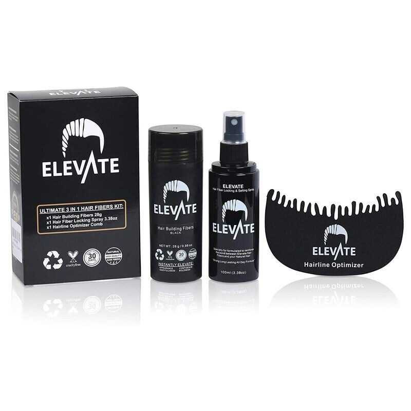 Ele Black Hair 3 In 1 Kit Set For Bald Spot Coverage, Hair Fiber and Spray With Comb