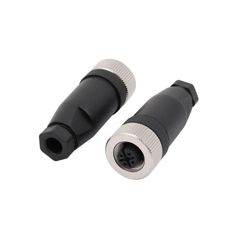 - [M12 4-pin connector]: M12, A code, wired on site, 4-pin, female, straight, screw connection, for cables, not shielded, IP67 waterproof.Made of high-quality nickel-plated brass material, high durability, high oxidation resistance.