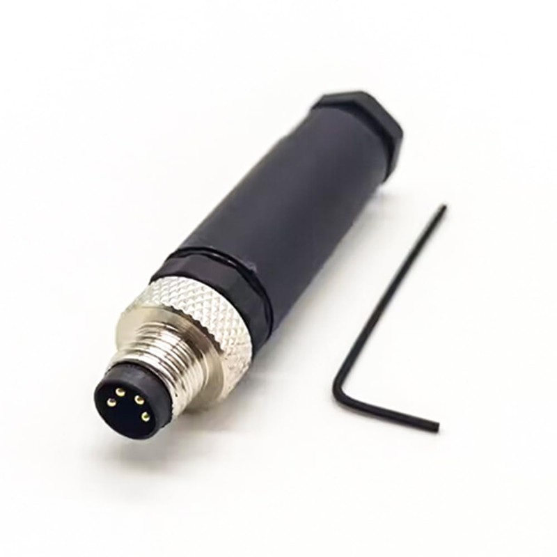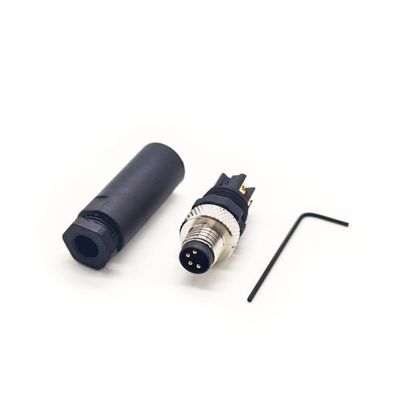 Elecbee M8 4-Pin Plug, 8 mm Sensor Cable Connector A Code Thread Lock M8 4-Pin Aviation Plug Round Connector IP67 Waterproof Industrial Round Connector for Outdoor Use (Male)