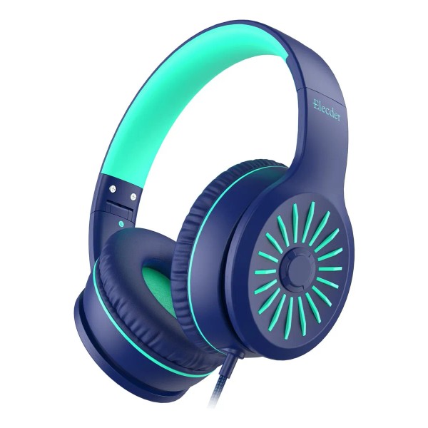 ELECDER i45 Auriculares supraaurales con micrófono - Bajos estéreo plegables, auriculares portátiles con cable sin enredos de 1,5 m, conector de 3,5 mm para - azul
