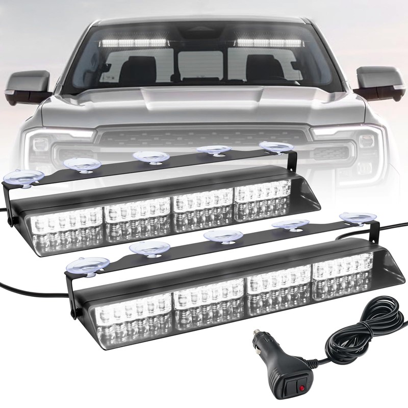 ELECHOI White 2 in 1 Emergency Dash Strobe Light Bar, Front/Rear 48LEDs Interior Windshield Visor Safety Flashing Warning Hazard Lights for Trucks Vehicles
