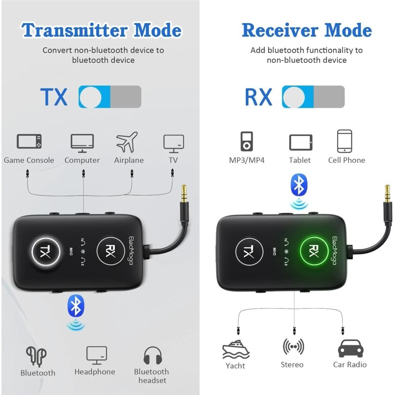ElecMoga Airplane Bluetooth Adapter 2025  Upgraded: 5.4, aptX Adaptive,AUX Receiver
