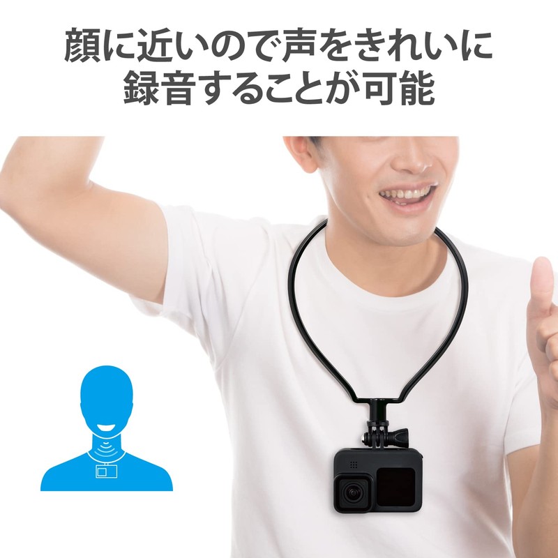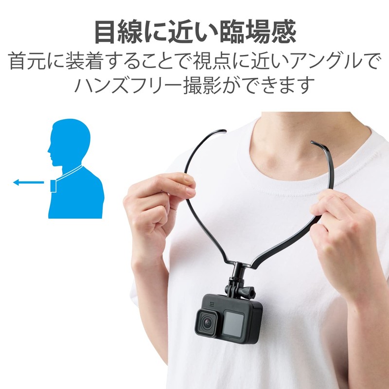 Elecom AC-MBNE01BK GoPro HERO10/9/8/7/6/5/MAX Necklace Mount, GoPro Universal Use, Adjustable Top and Bottom, Fall Prevention, Adjuster, Black