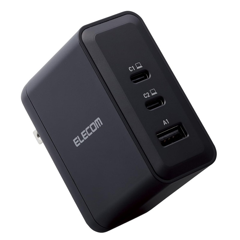 Elecom ACDC-PD65100BK Charger, 100 W, 3 Ports, USB PD Compatible, Rapid Charger, 3 Devices Simultaneously, Folding Plug, Meets PSE Technical Standards, Black