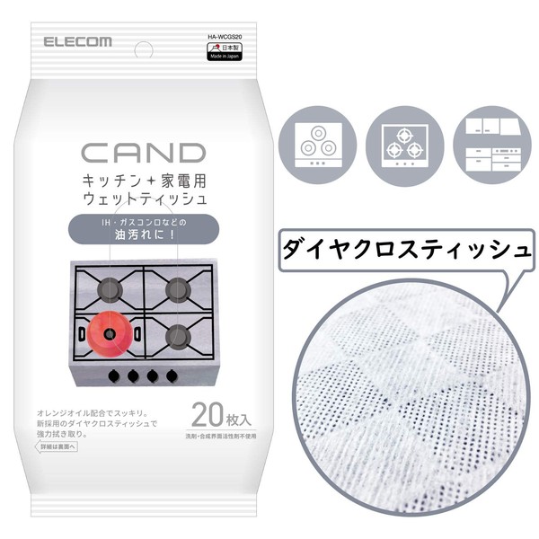 Elecom - CAND - Kitchen and Appliance Cleaner Sheet, Thick, Large, For IH and Gas Stoves, 20 Sheets Included