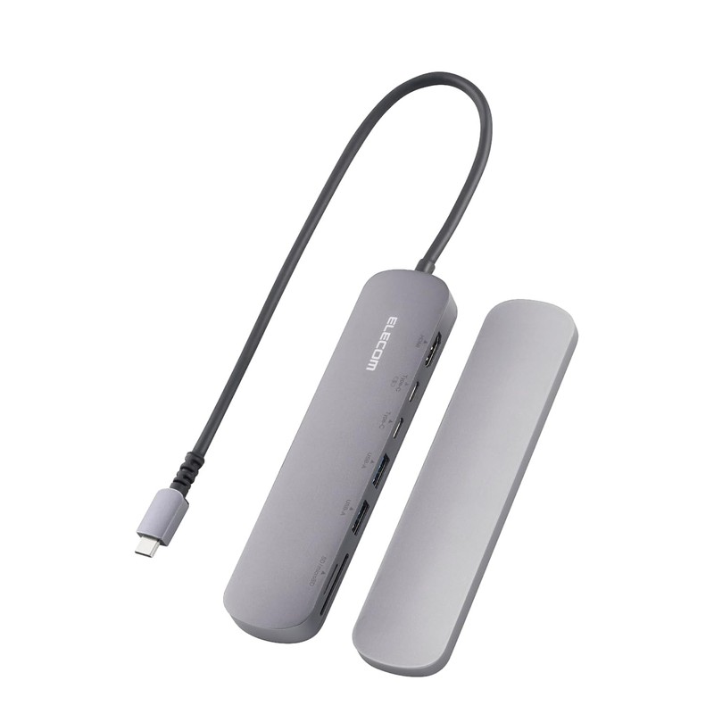 Elecom DST-C20SV USB Type-C Hub Docking Station 7-in-1 Aluminum Body with Secure Stand, 2 USB-A, 1 HDMI, 2 x USB-C, SD+TF Card Slot, Silver