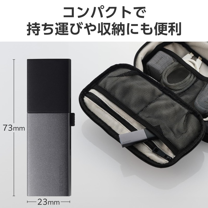Elecom ESD-EWC0500GBK External SSD, 500 GB, USB3.2 (Gen2) Compatible, Slide Type, Type C, Type A, Slide Switching, Black