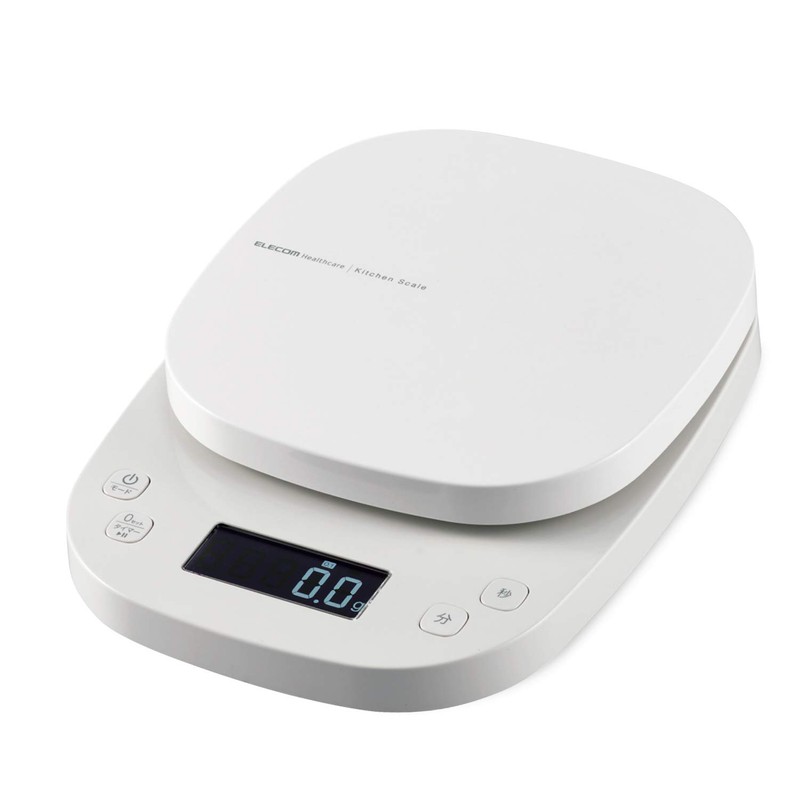 Elecom HCS-KS03WH Kitchen Scale with Timer, Maximum 4.4 lbs (2 kg), Minimum 0.004 oz (0.1 g) Display, White