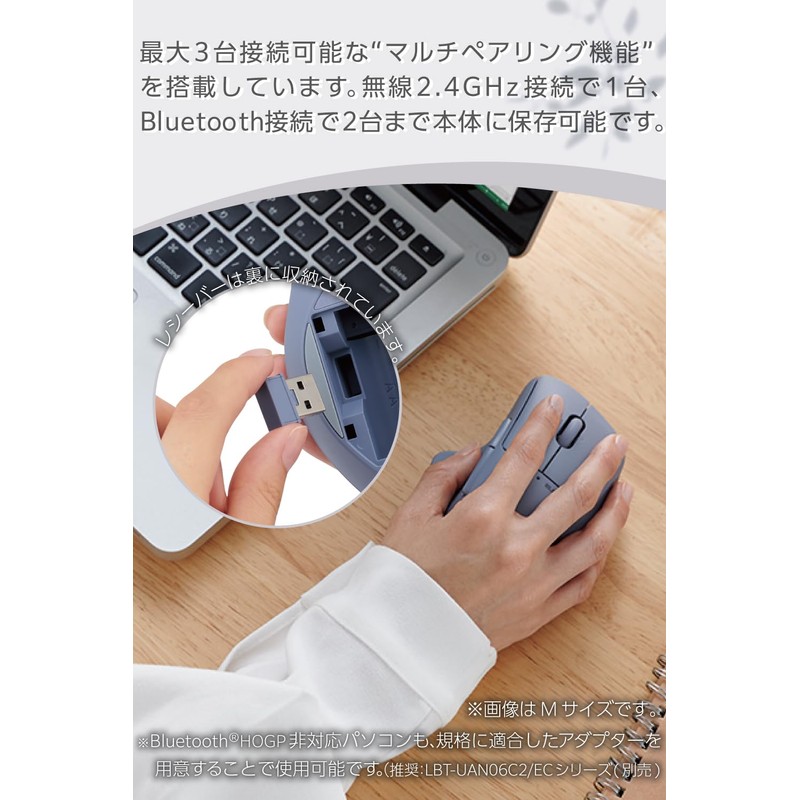 Elecom M-SH31MBSKNV Wireless Mouse, Silent, 5 Buttons + Tilt, Bluetooth, Compatible with 2.4 GHz, Multi Pairing (Up to 3 Units), Small, Navy