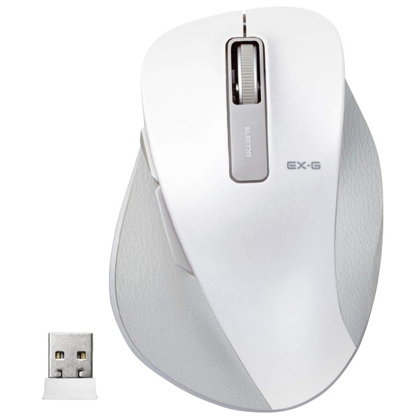 Elecom M-XGM10DBWH Wireless Mouse (Receiver Included), 5 Buttons (With Back/Forward Button), Blue LED, Extreme Grip, White, Size M