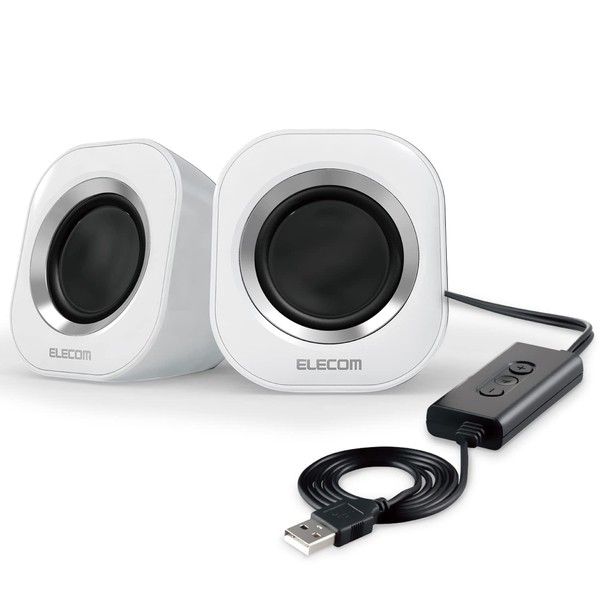 Elecom MS-P08USB2WH PC Speaker - USB Connection, Volume Adjustment, Mute Function, Maximum Output 5W, Compact, White, 2.8 x 2.9 x 3.2 inches (72 x 74 x 82 mm)