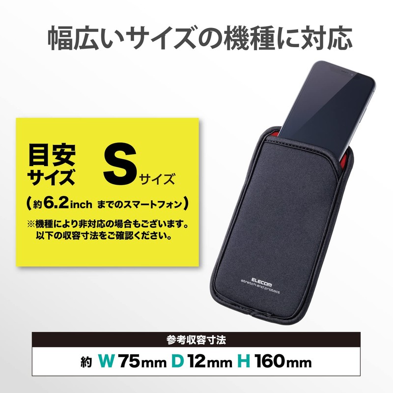 Elecom P-04SNCBK Smartphone Pouch, Single Storage, Small, Slip-in Type, Back Pocket, Black