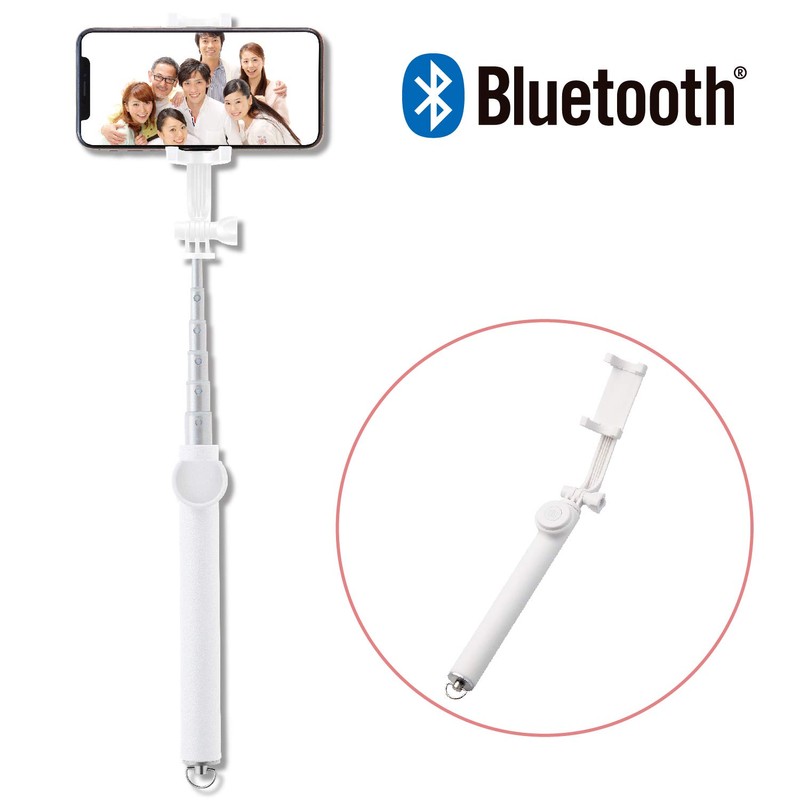 Elecom P-SSB01RWH Selfie Stick Selfie Stick Bluetooth Remote Control 360° Rotation, 360° Rotation, White