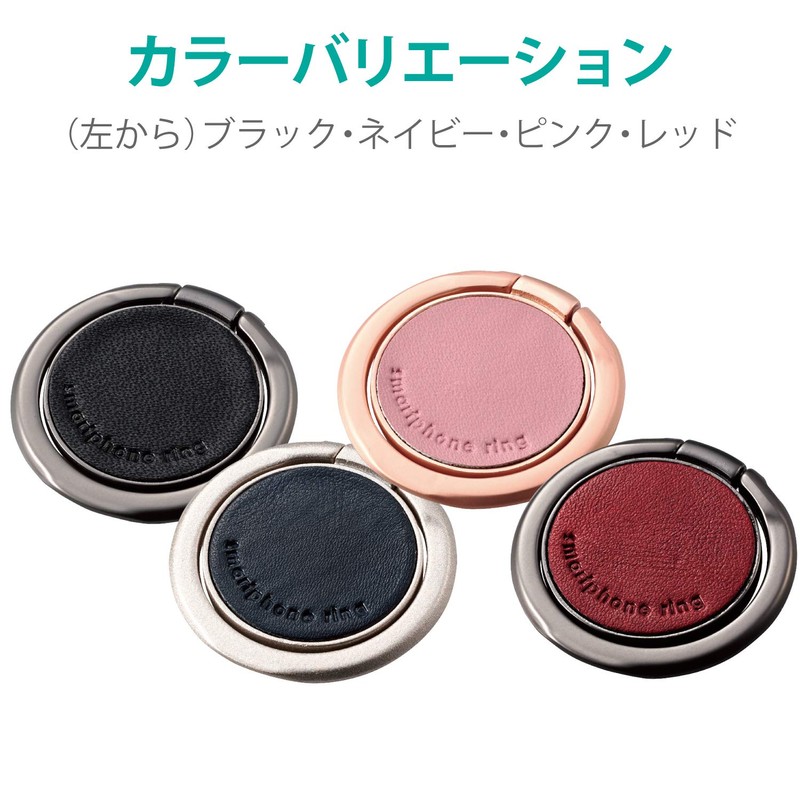Elecom P-STRSLLBK Smartphone Ring Holding Ring, Leather, Thin, Black