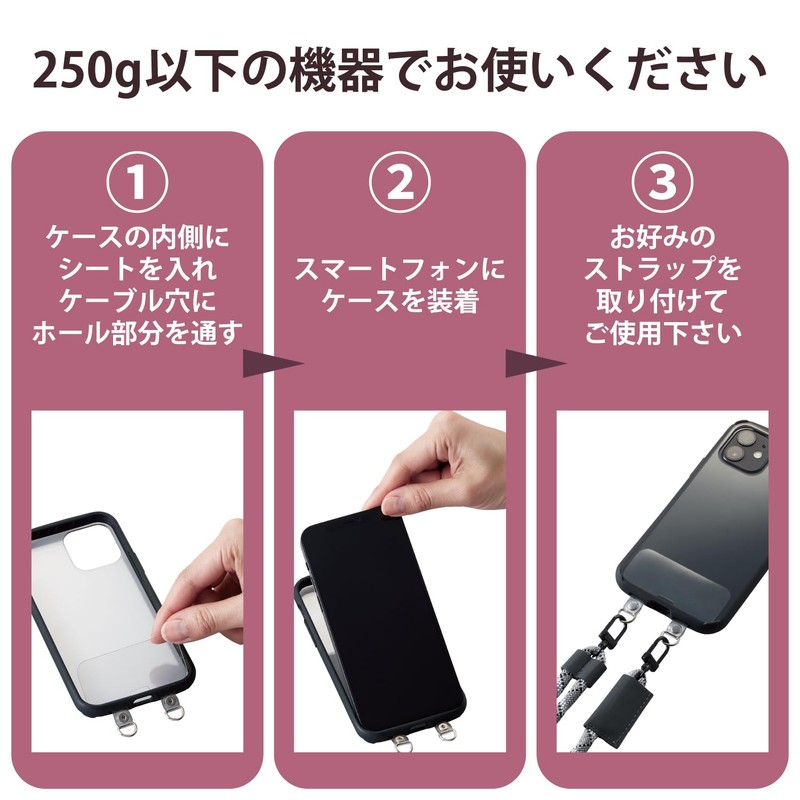 - This is a 2-slot strap hole sheet that allows you to add a strap hole by simply placing it between your smartphone and the case