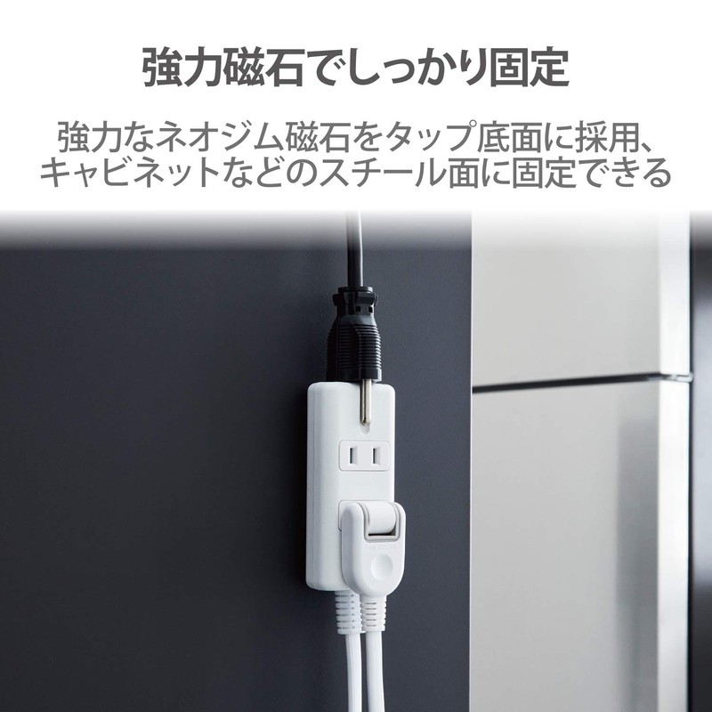 Elecom T-KM01-2320WH Power Strip Magnet, 6.6 ft (2 m), 3 Slots (3 Pins 1), White