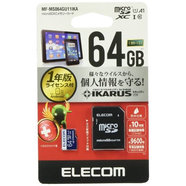 - This is a microSDXC memory card with a 1 year license from the security software "IKARUS" that protects smartphones and tablets from various viruses