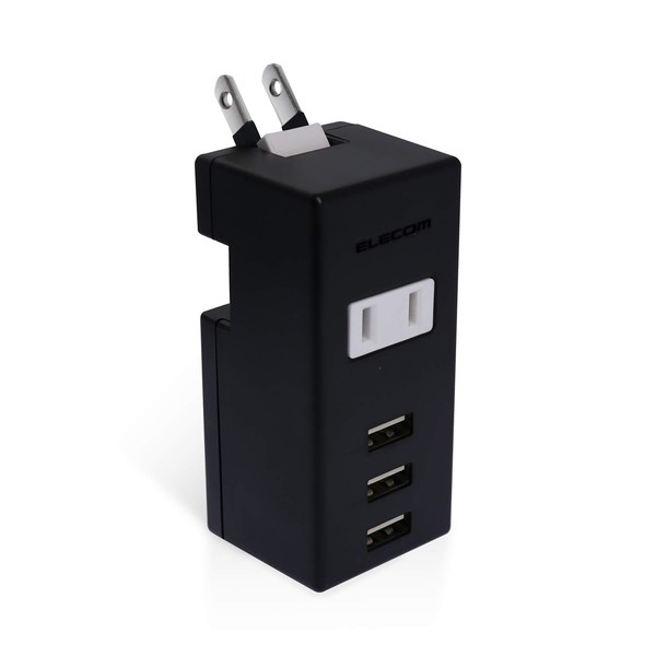 Elecom USB Tap, USB Female x 3, AC x 1, Vertical Insert, 2.1A, Black