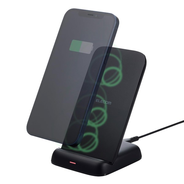 Elecom W-QS11BK Wireless Charger, Qi Standard Compatible, Maximum Output 12W, Stand Type, EPP Standard Compatible, 3 Coils, Black