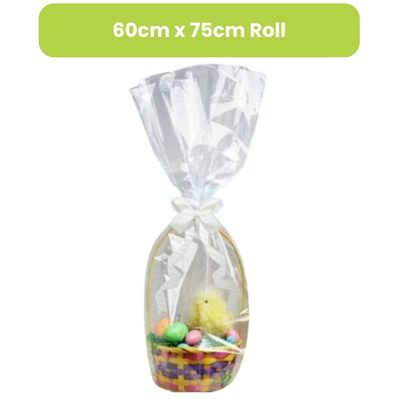 Electoys Clear Cellophane Wrap Roll | Cling Film Wrapping Paper for Hamper Basket Baby Shower Gifts | Plastic Wrap, Valentines & Birthday Wrapping Paper Sheets Transparent | 60x75cm Roll