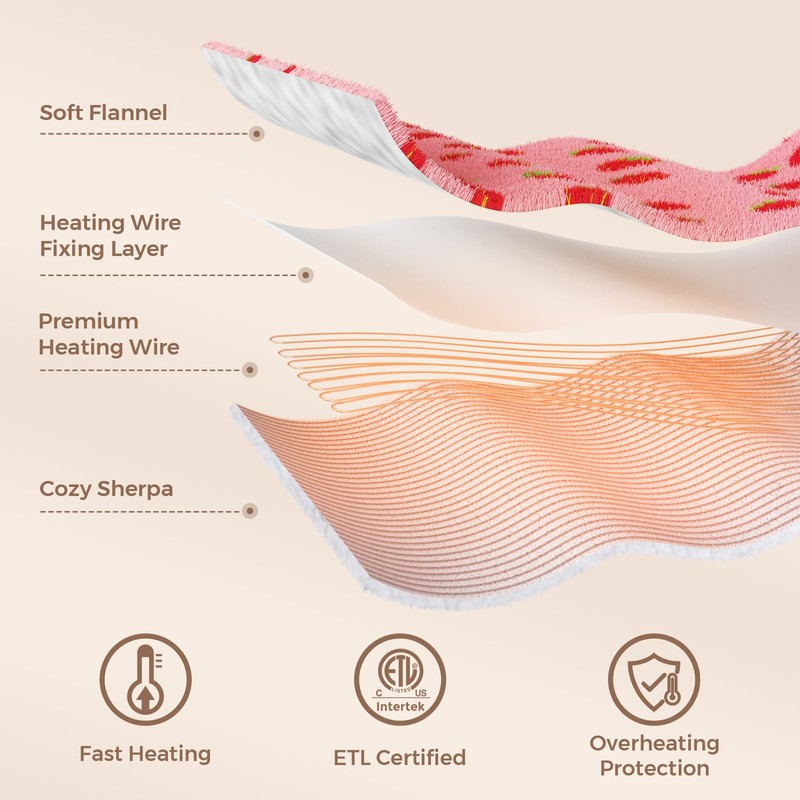 - Feel Unparalleled Comfort: With a flannel front and a sherpa reverse, our heated throw is skin-friendly, helps retain heat for added comfort, and gently wraps you in warmth on cold nights. Cute strawberry print perfect as a holiday gift for women, mother.