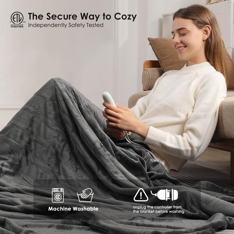 - Safety & Certification: ETL certified of higher safety standard with advanced NTC overheating protection, our heated blanket queen size is equipped with default 10-hour auto shut-off , prevents it from overheating so that you can enjoy warmth with peace of mind.