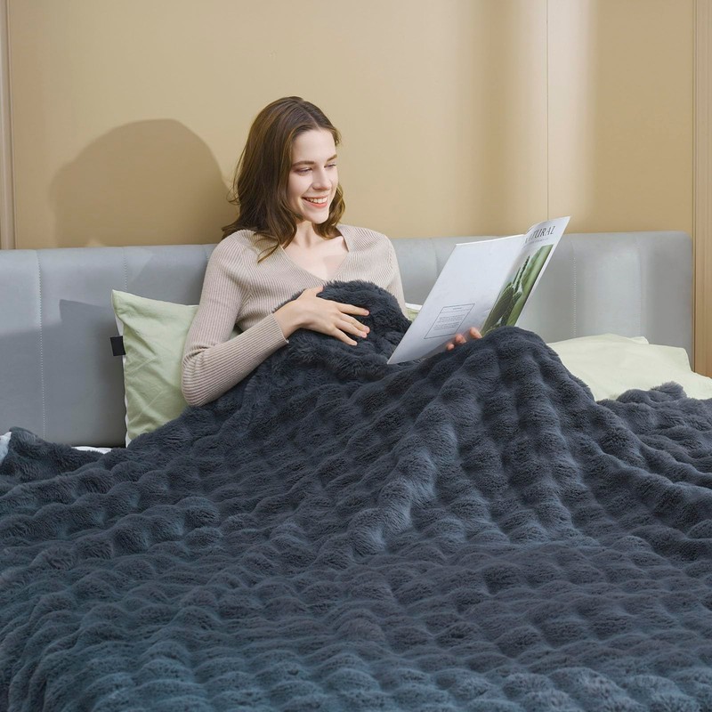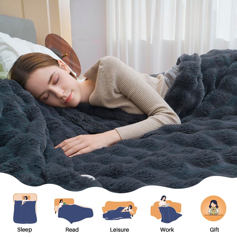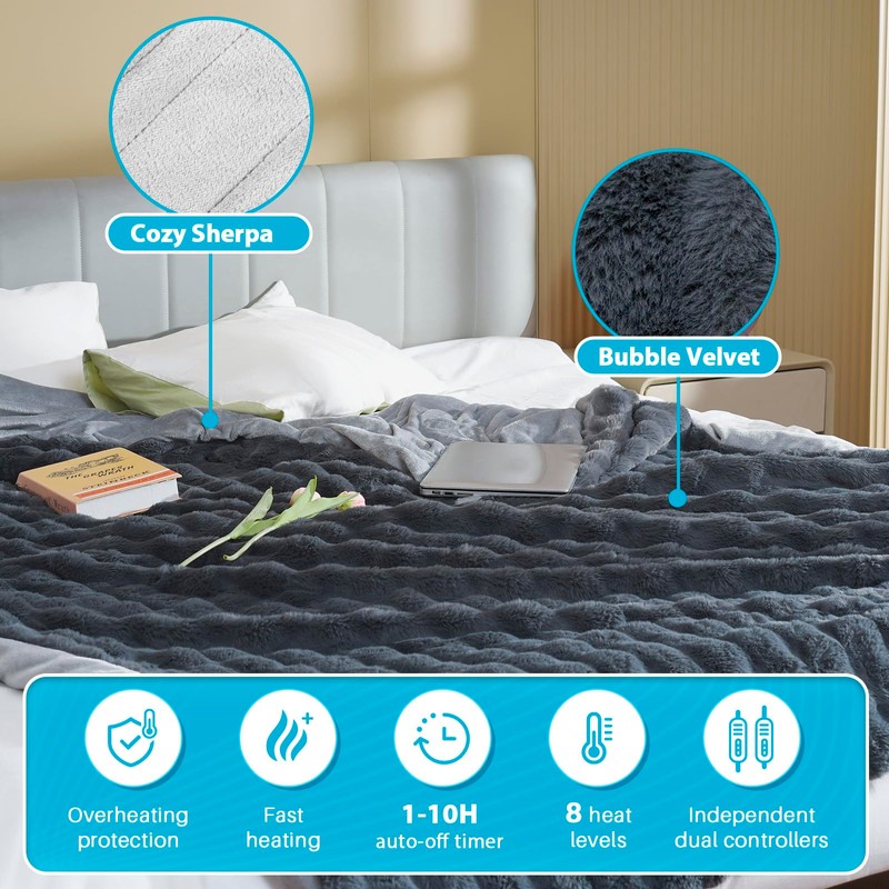 - 【Soft and Cozy Fabric】The inner layer of the heated blanket is made of 200 GSM warm sherpa, the outer layer is made of 200 GSM soft bubble velvet. It can be used on beds, sofas and offices, also can be used as a regular blanket if you detach the controller.