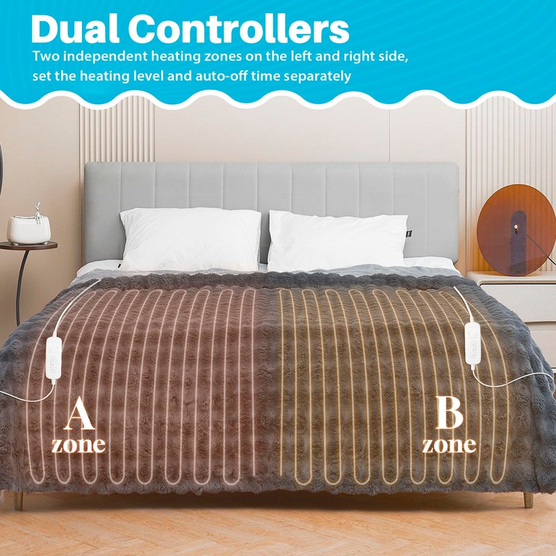 - 【Dual Control Electric Blanket】The heated blanket featurs independent heating elements and controllers on left and right side, meet the different temperature needs of the dual users.