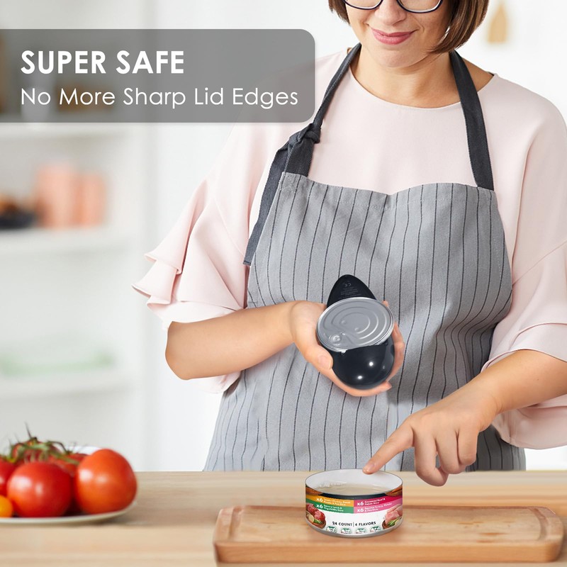 - SAFE FOR FOOD USE – Equipped with advanced blade technology, this can opener ensures smooth, safe edges without any sharpness. A built-in magnet lifts the lid securely, preventing it from falling into your food and ensuring food safety.