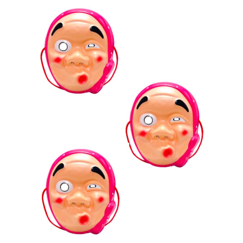 [Electric Circus] 【3枚セット】 お面 ひょっとこ SNS映え ネタ作りに コスプレ 半面タイプ お祭り 縁日 肝だめし パーティー イベント 伝統的 演出 小道具 (ピンク×3枚)