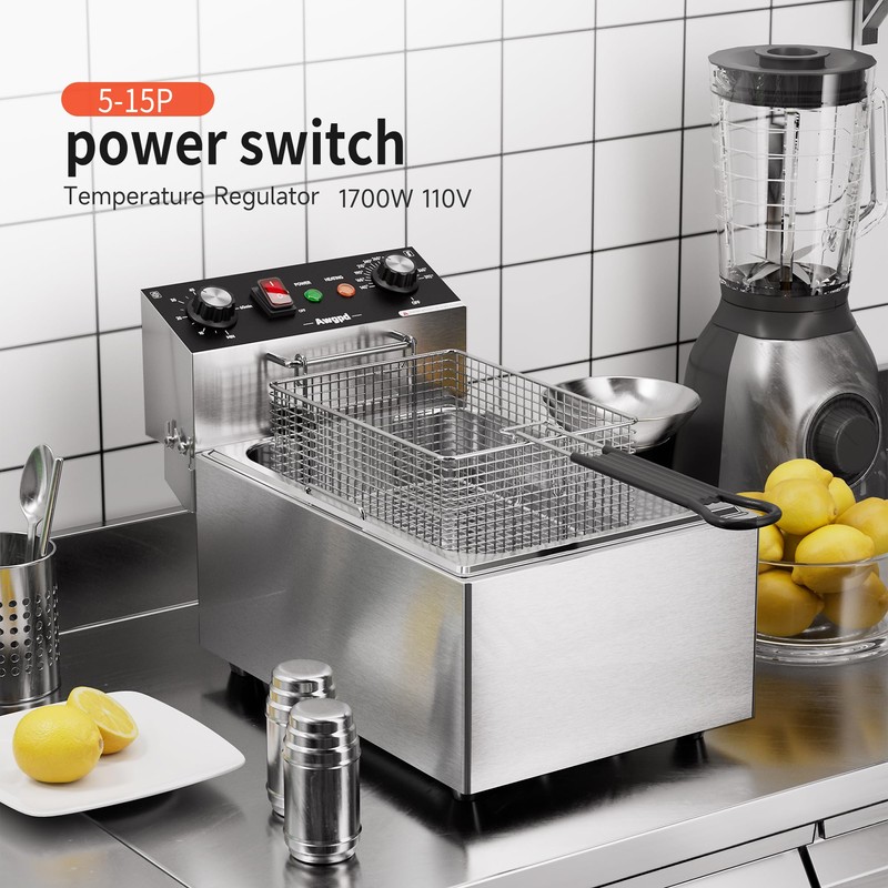 - High Wattage Design:This commercial fryer is equipped with a powerful 1700W heating element in each basin that guaranteed to fry or warm food quickly and maintain oil temperature; This high wattage countertop fryer provides greater heating efficiency for faster cooking and a higher output in a compact countertop footprint; Perfect for frying chips, fish, chicken, doughnuts, fritters, onion rings, shrimp, French fries and etc