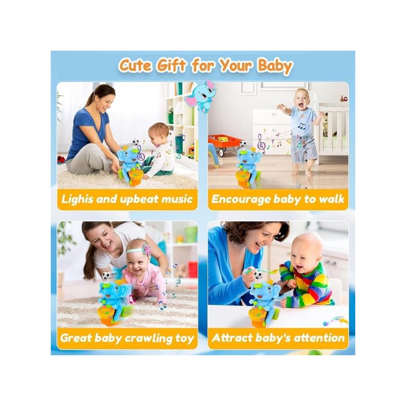 Electric Elephant Crawling Music Toy with Blowing Ball Function, Spinner Drumming Toy with Light fun Music Toy for babies Gifts for Kids 6-12 Month:_Orange