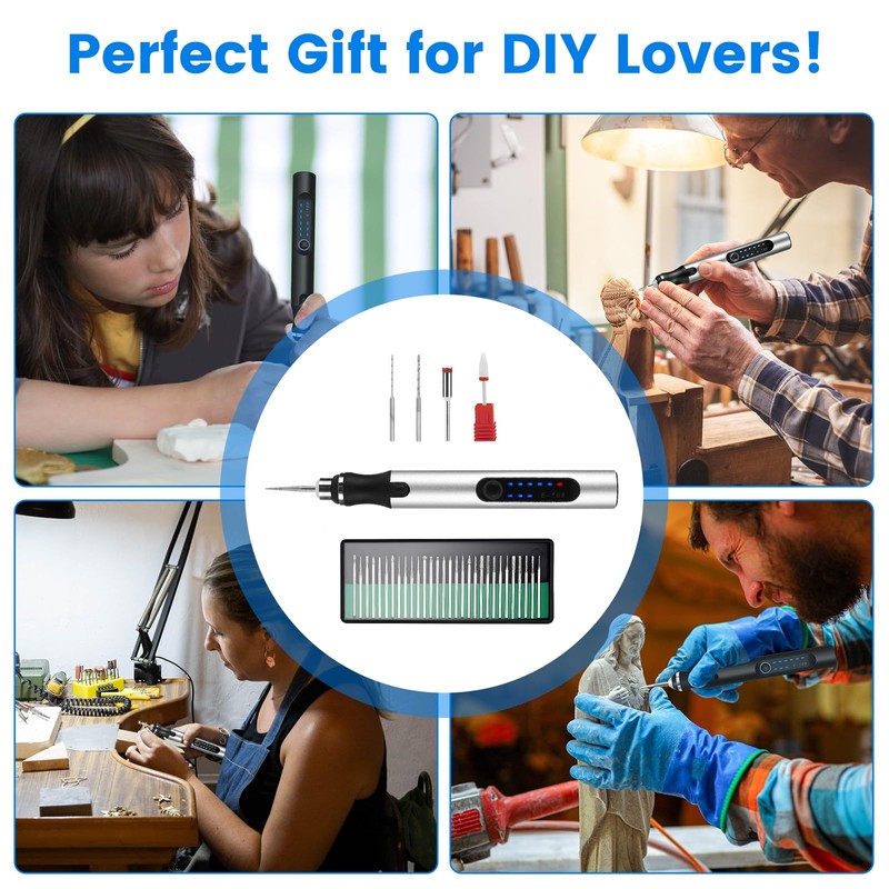 Unleash your creativity with our electric engraving pen, the perfect tool for both professionals and beginners! Equipped with 33pcs diamond burr bits, 1 mandrel with 3 saw blades, and 5pcs stencils, this versatile tool allows you to easily engrave a variety of materials such as glass, metal, wood, stone, and jade. Whether you're customizing jewelry, creating personalized gifts, or adding intricate designs to any project, this engraver tool can meet all your engraving needs.