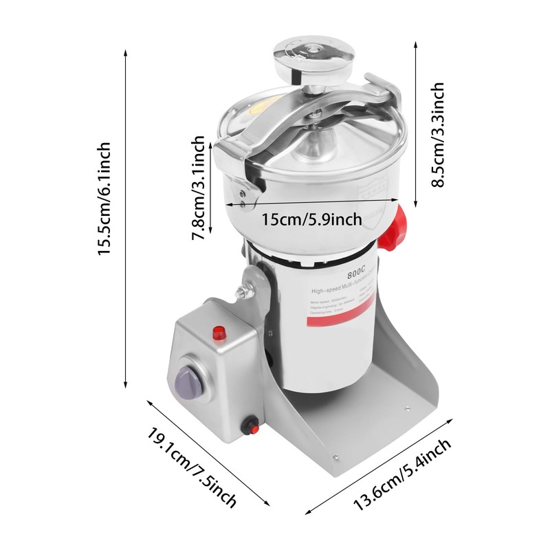 - Suitable Capacity: This high speed grinder's crushing bin can hold approximately 800g/1.76lbs of material (not recommended to fill it up), allowing you to grind enough materials at once, fully meeting the needs of households or small businesses