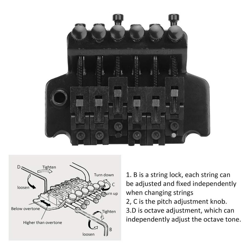 - EASY TO INSTALL The guitar bridge tremolo system is equipped with screws, springs and other mounting accessories, no additional tools, very easy to install and operate.