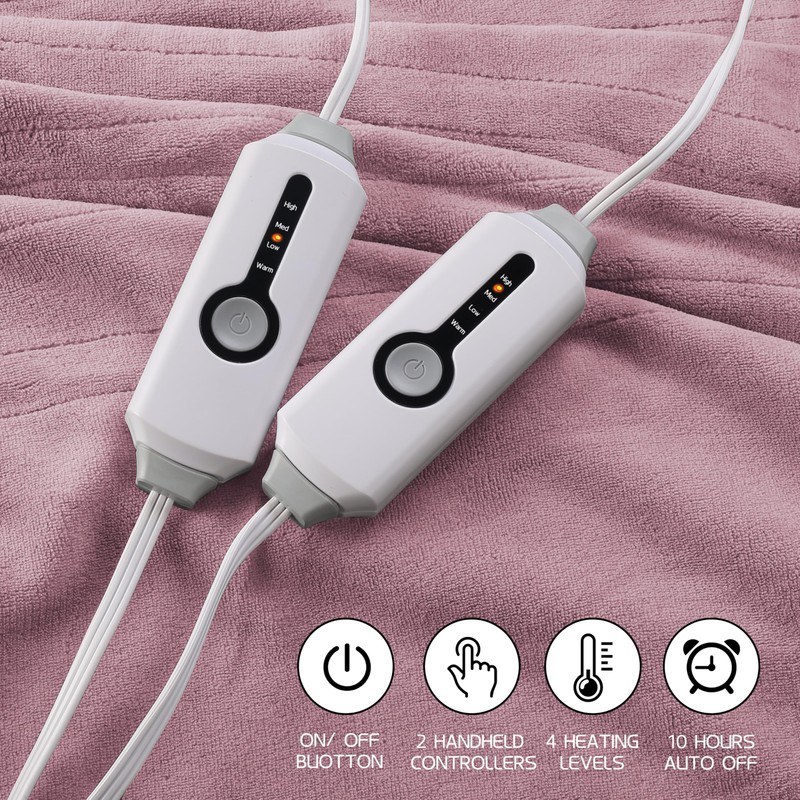 - 【Customizable Warmth】The electric blanket queen size 84"x90" featuring 4 heating settings and a 10-hour auto shut-off function, Along with 2 temperature controllers that allow you to adjust different temperatures on both sides, our product is designed to soothe your tired body