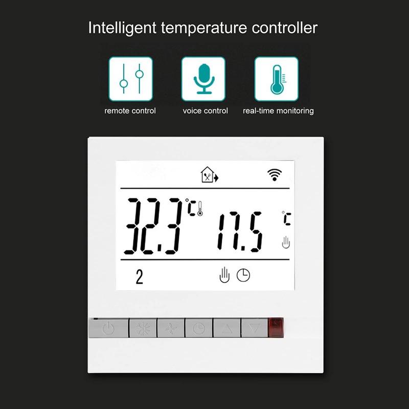 - Voice Control: The digital thermostat adopts microcomputer control technology, it can turn on/off or set a suitable temperature by simply giving voice commands.Support Chinese, English, French, Russian, Arabic and Spanish.