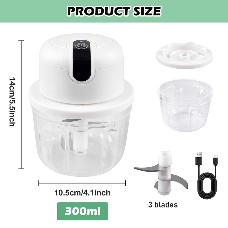 - Durable and safe: electric kitchen chopper is made of stainless steel blades and high-quality food grade PP material and is robust and durable.